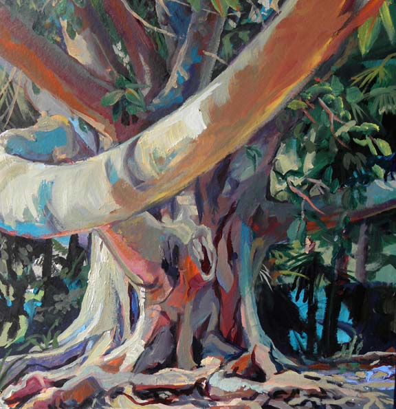 Today was beautiful day for painting. I painted a tree well-beloved by Bermudians who have climbed it as children. It is indeed a ficus, a rubber plant. Hard to believe that your house plant could become one of these one day!