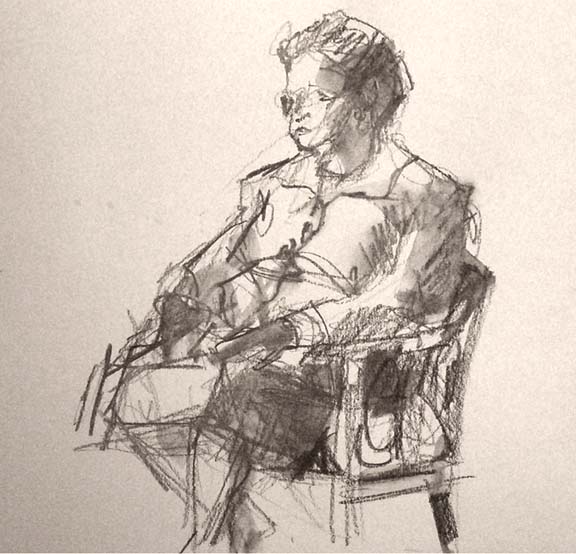 Varnished paintings in the morning. Had a drawing session in the afternoon with our model, Barbara Butterfield. She certainly doesn’t look 88! What an elegant and lovely woman.