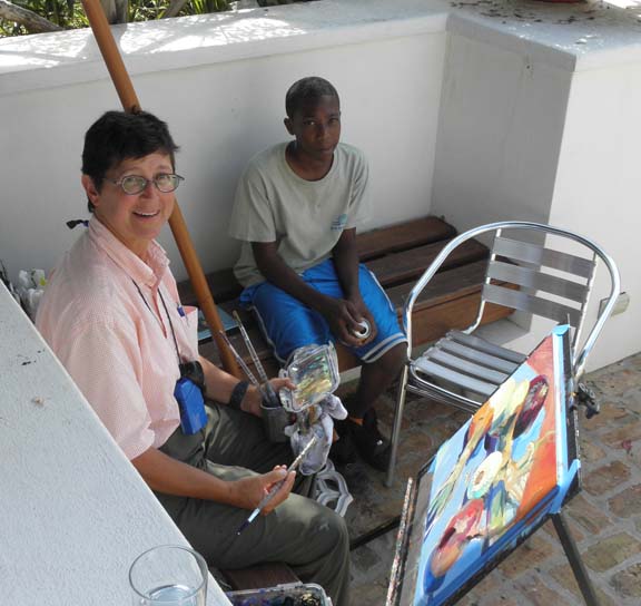 Michael, also a painter, sat with me while I did my onions painting — we shared notes about color theory, painting equipment, and how we paint.