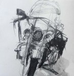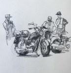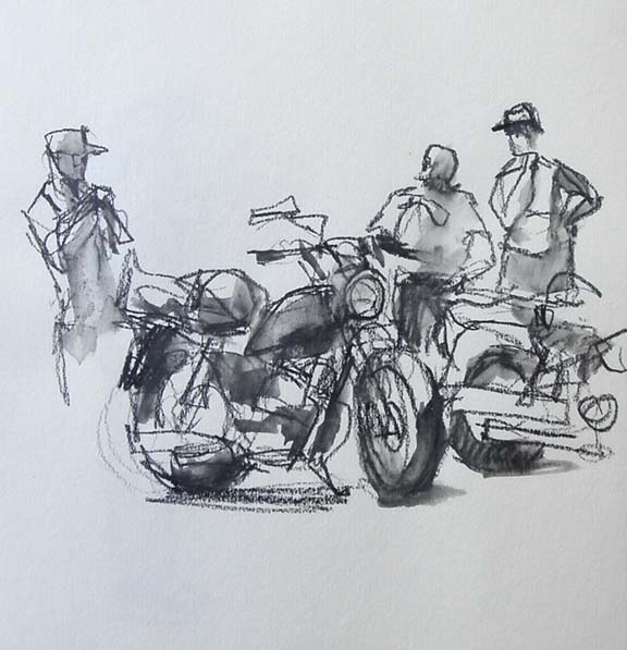 Motorcycles from a motorcycle cruise (no kidding!) rumbled into town this morning. They looked like they were having a great time! It was a nice opportunity to do some sketching.