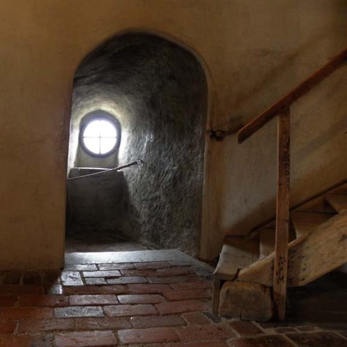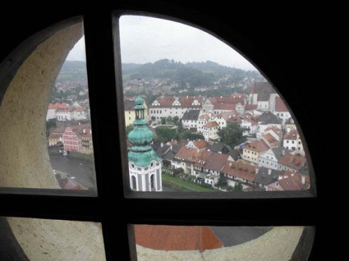 All day, a persistent shower. I hunkered down in the tower, ducked under the rope, and lost myself in another town drawing. It was a good way to make an unpleasant day rather pleasant after all.
