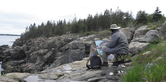 all my paintings were done en plein air, outdoors in the cold and wind, where I could work directly from observation and capture something about the experience of being here. It was the landscape which inspired me, and I fell in love with the amazing Acadia rocks all over again.