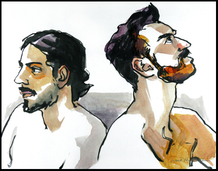 Here are a couple more drawings from my on-line sessions. You can see lots more at KMOE Gallery, all season long!