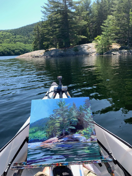 Since I last wrote, I did paint some “kayak paintings,” and I can’t wait to do more. I had a bit of a learning curve, and had to figure out how to anchor my kayak and deal with wind. I loved being on the water though, and I was able to paint from a different perspective, no longer limited to the views from paths and trails.